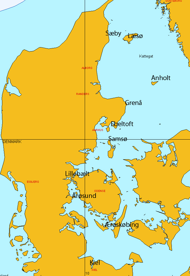 Nå nærmet tidspunktet seg for når Tina sin bror Stig og hans barn Amanda (10) og Henrik (7) skulle komme på besøk, så det var på tide å komme seg videre sørover. En lang etappe til Grenå på 90 nm ble tilbakelagt. Grenå ble kun anløpt på grunn av at vi ønsket å besøke Kattegatsentret og akvariet der. Oda begynte nå å bli snufsete og forkjølet. Flere av oss andre skulle følge etter mer rennende nese, sår hals og litt feber.