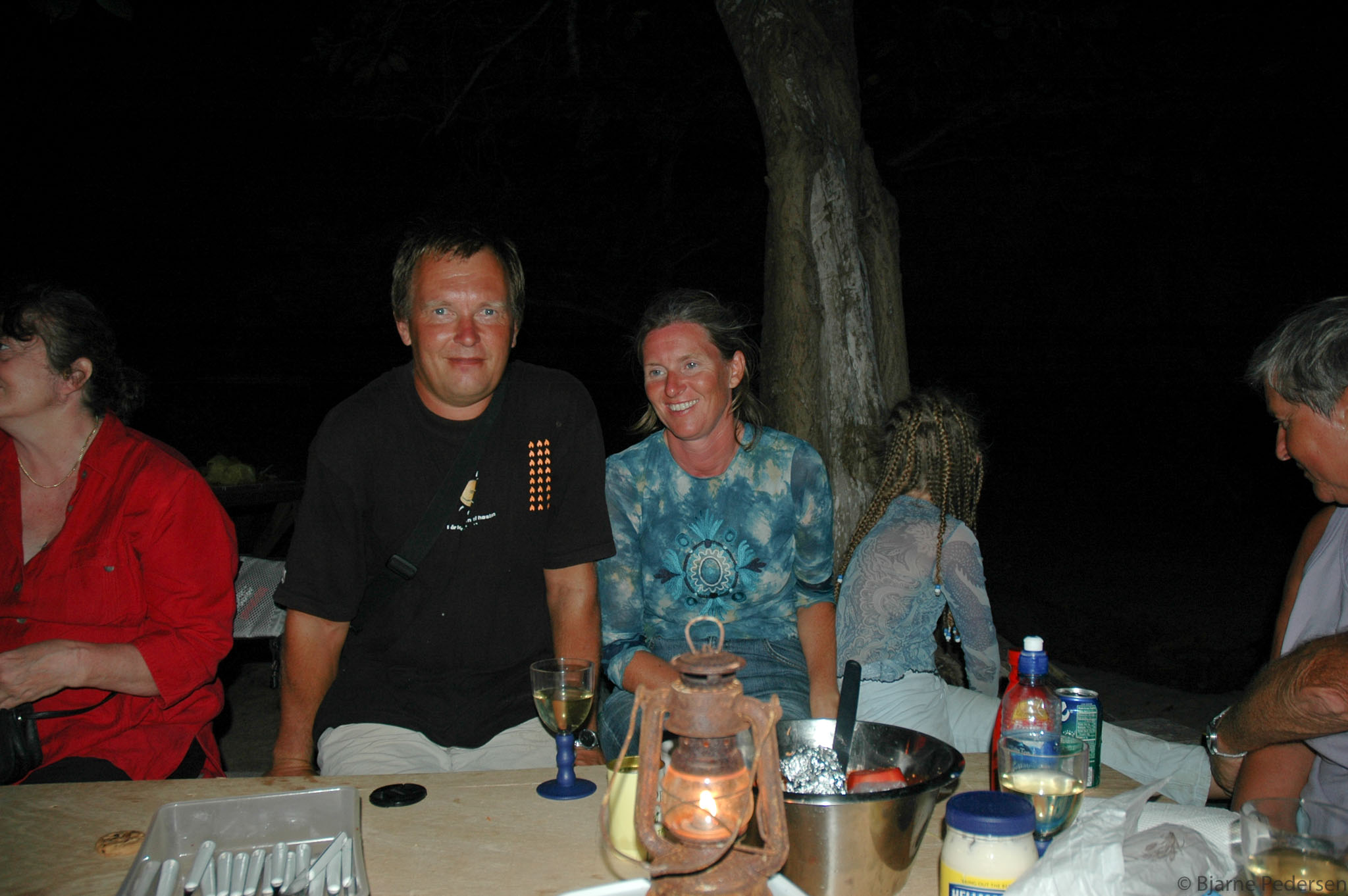 Ved solnedgang klokken seks om ettermiddagen samlet alle skandinaver seg på stranden for å spise julemiddagen. Vi hadde leid Willy til å arrangere grillfest på stranden for oss. Han hadde satt opp bord og benker og grillet masse deilig mat til oss, kylling og svinekjøtt. Willy, den hyggelige smykkemakeren, kunne daglig observeres der han seilte i den litte båten sin for å selge smykkene sine til seilerne.